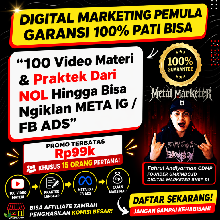- Keterampilan : Digital Marketing Sertifikasi BNSP RI, Social Media Advertising (Meta Ads)